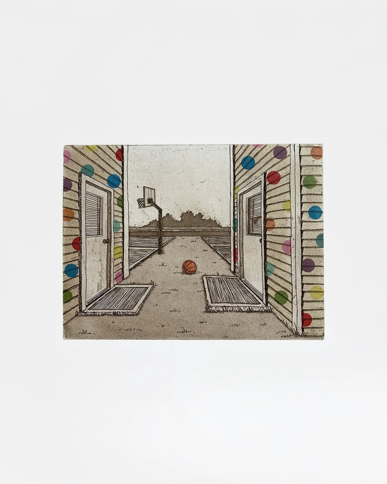 The View From Across the Street, 12”x 15” etching, 2022