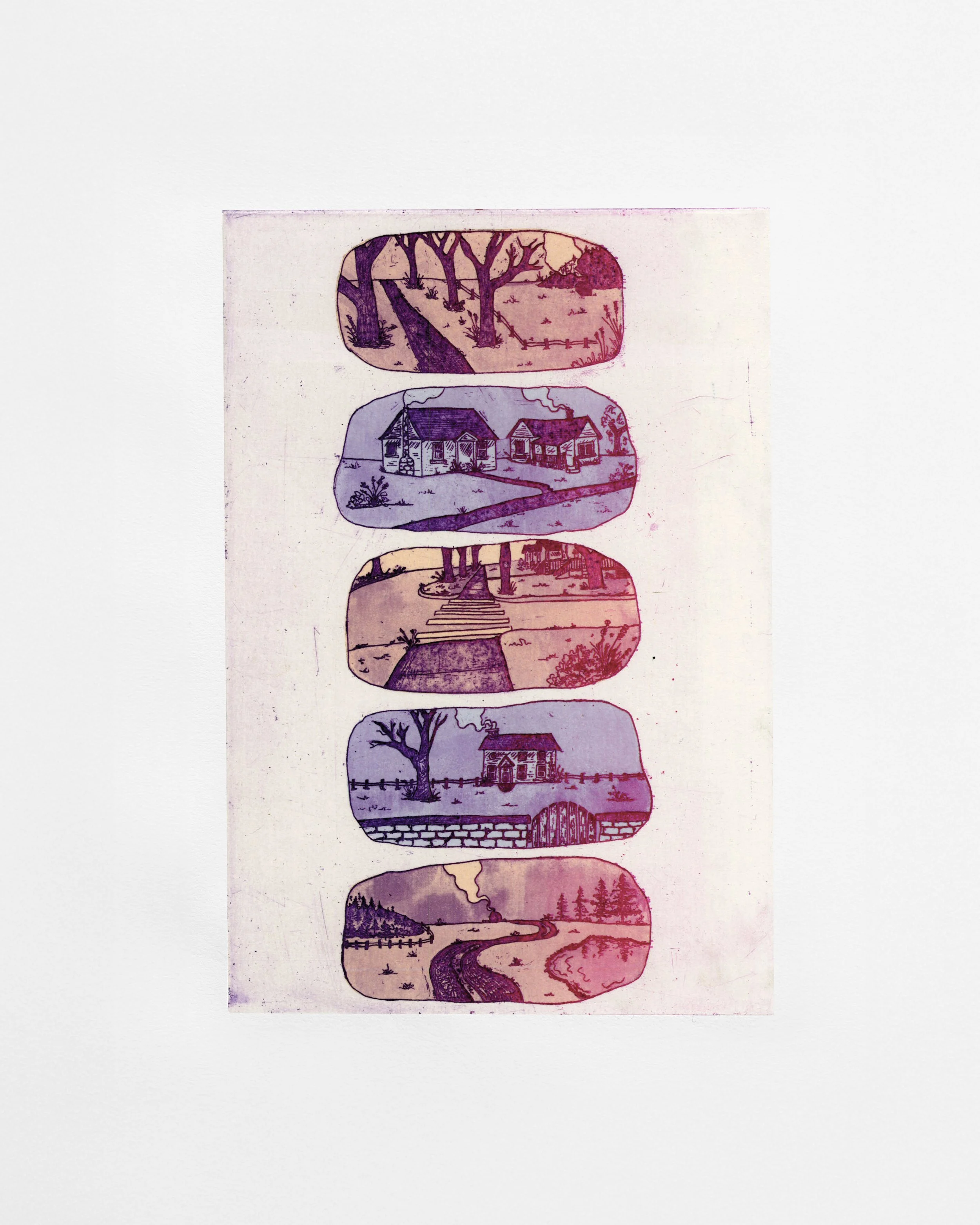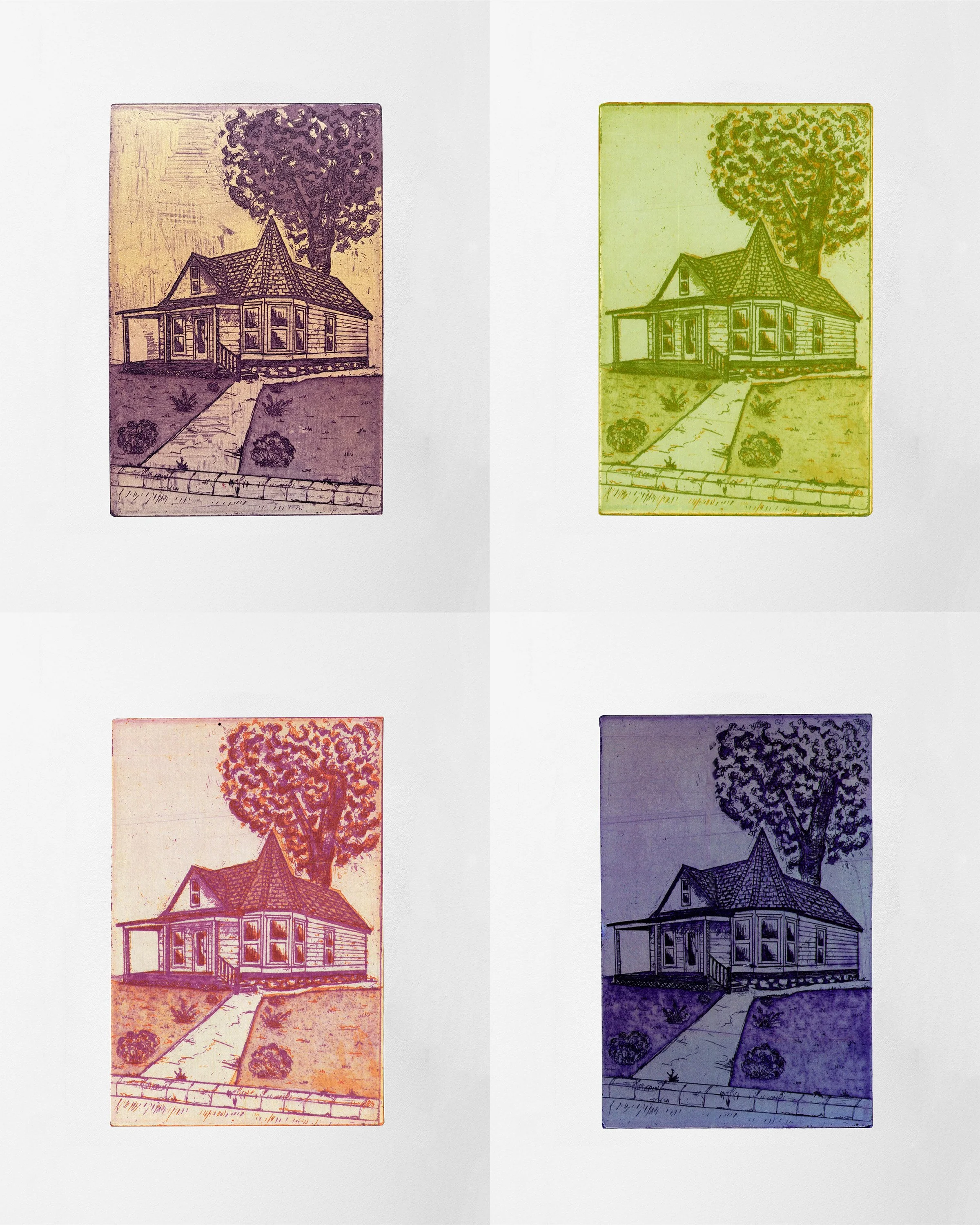 Variations of House #1, 4" x 6" etching, 2023
