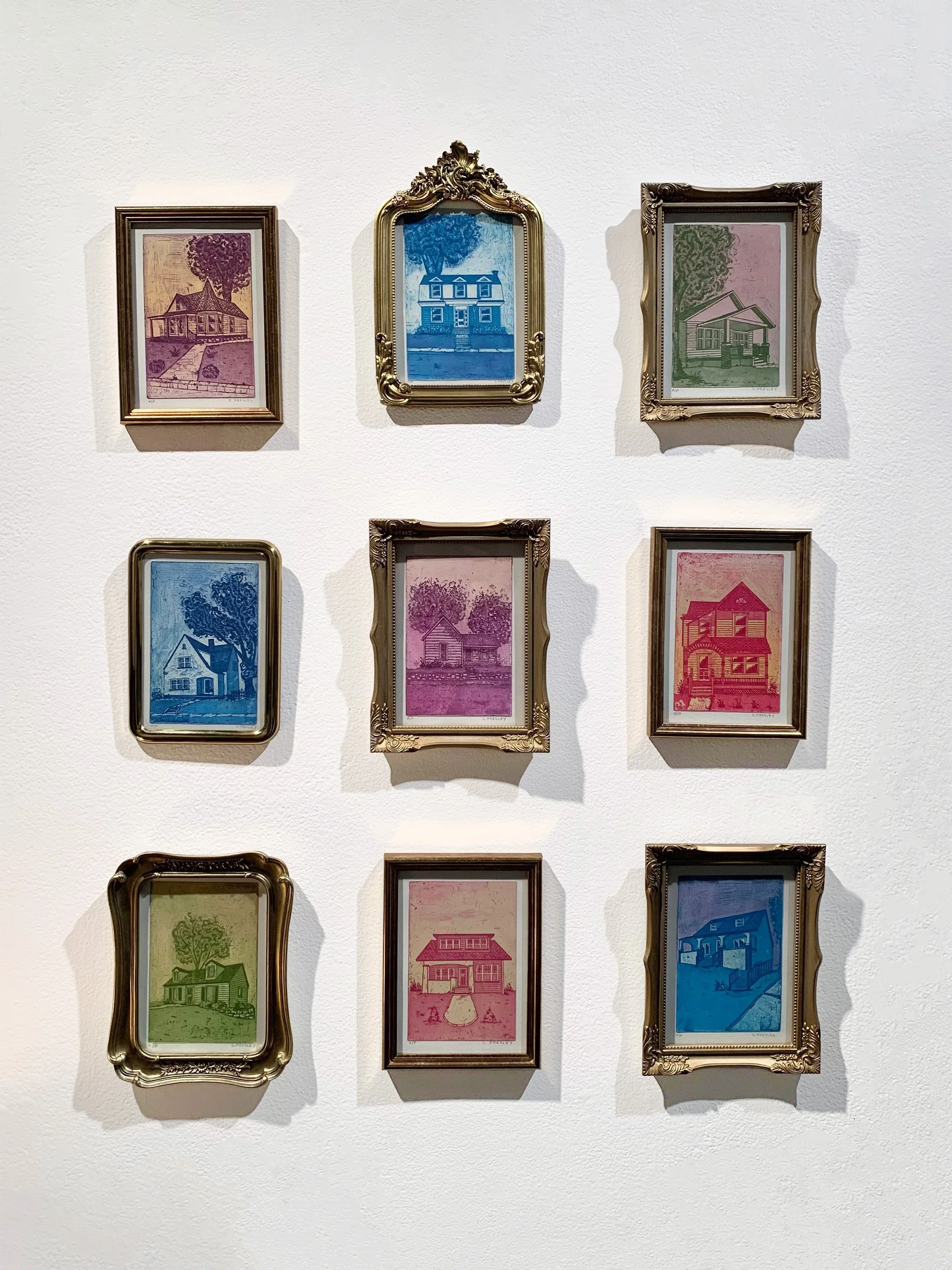 House #1 - 9, 4" x 6" etchings, 2023