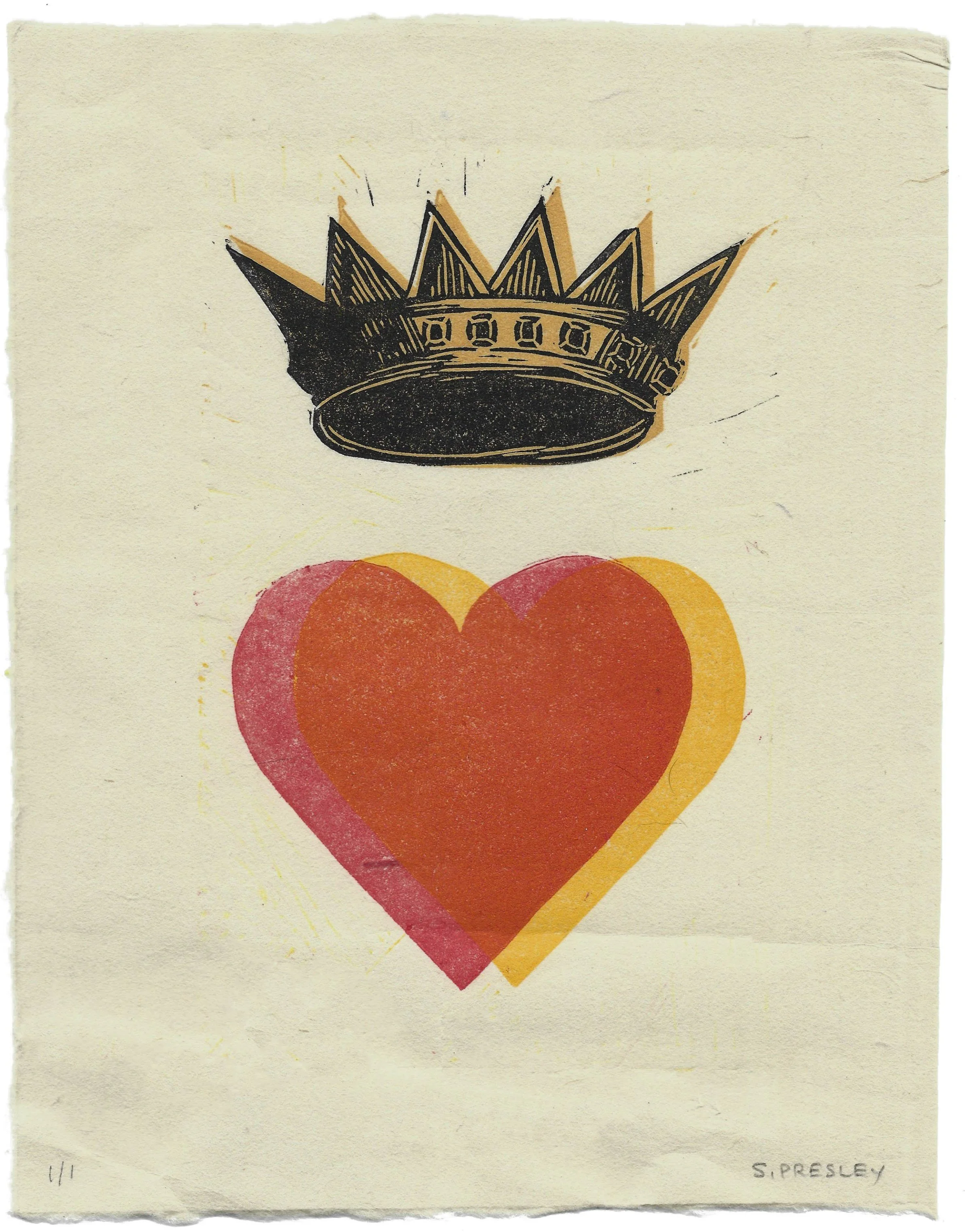 Claddagh, 8” x 10” linoleum relief, 2024