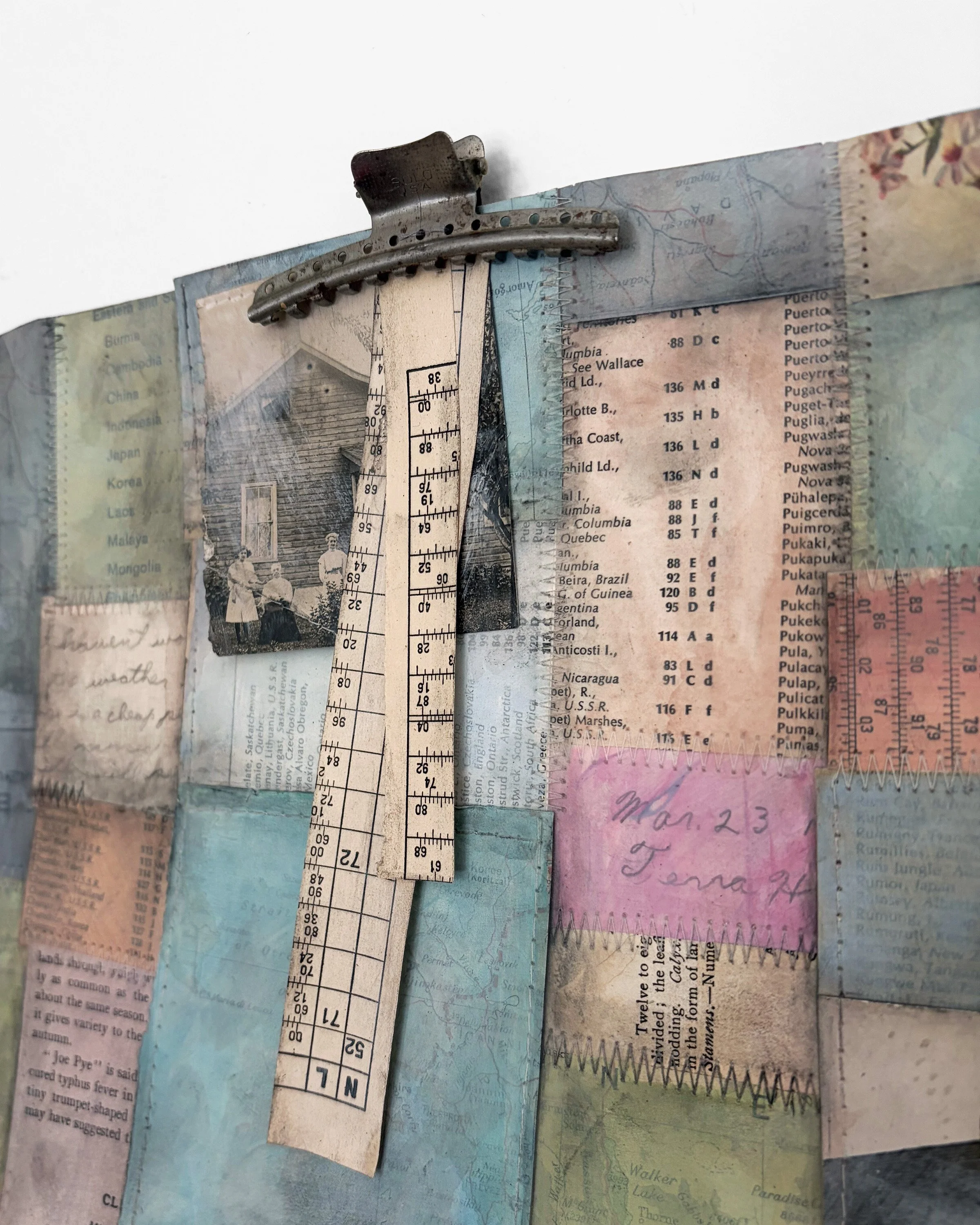 Untitled, 11" x 9" sewn collage with mixed media, 2025