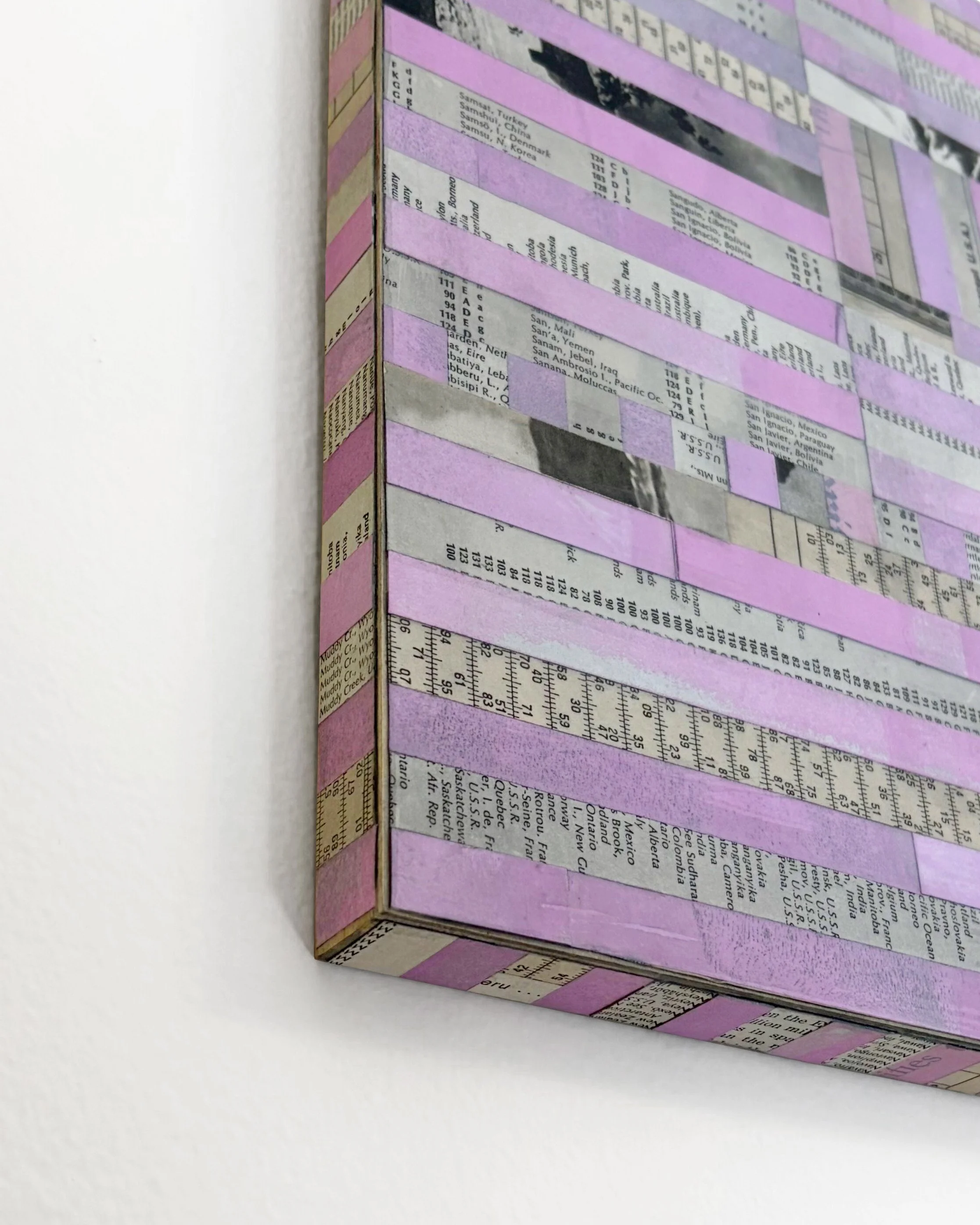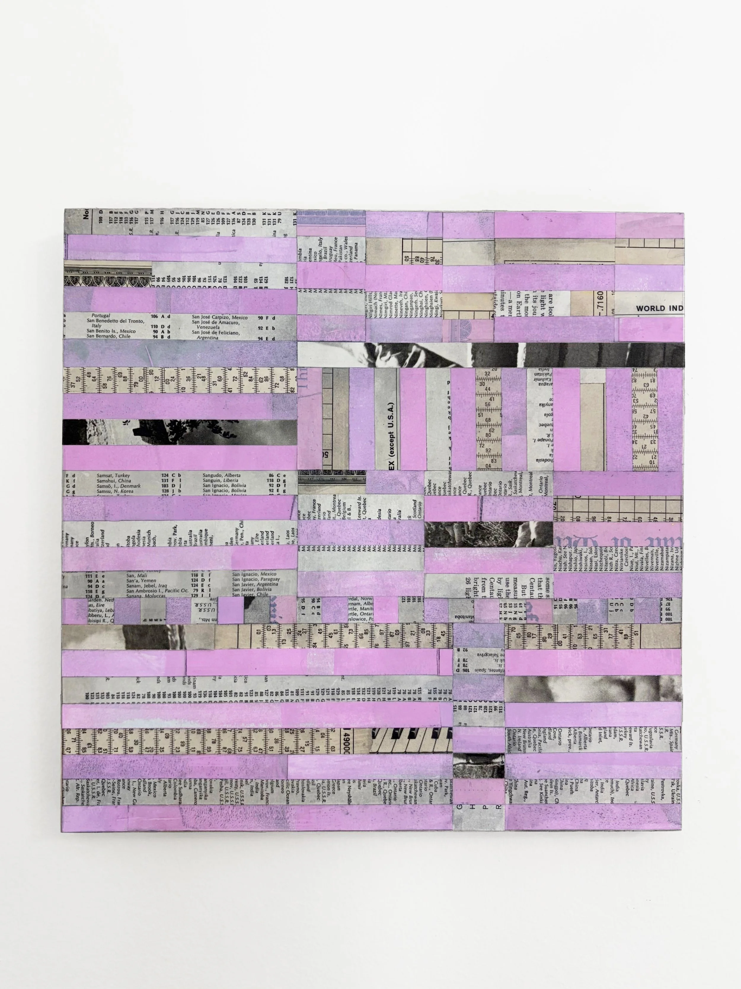 Bedroom Stripes, 12" x12" collage on panel, 2025